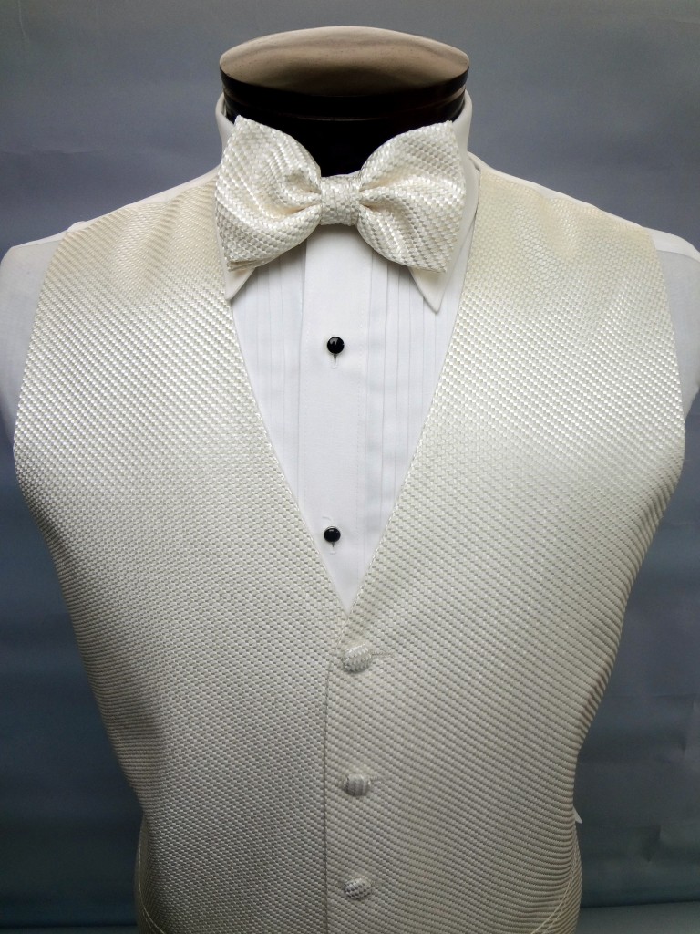 Ivory Patterned Vest w/ Matching Patterned Bow Tie